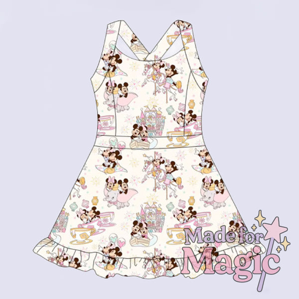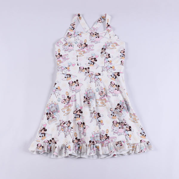 Get ready to twirl into magic! Our Park Day Princess Dress is the ultimate blend of sporty comfort and dreamy style. Made for long theme park days, tennis matches, or just chasing joy under the sun. Adorned with an all-over pastel print featuring castles, treats, and beloved mouse-eared friends, this dress brings the enchantment everywhere you go.