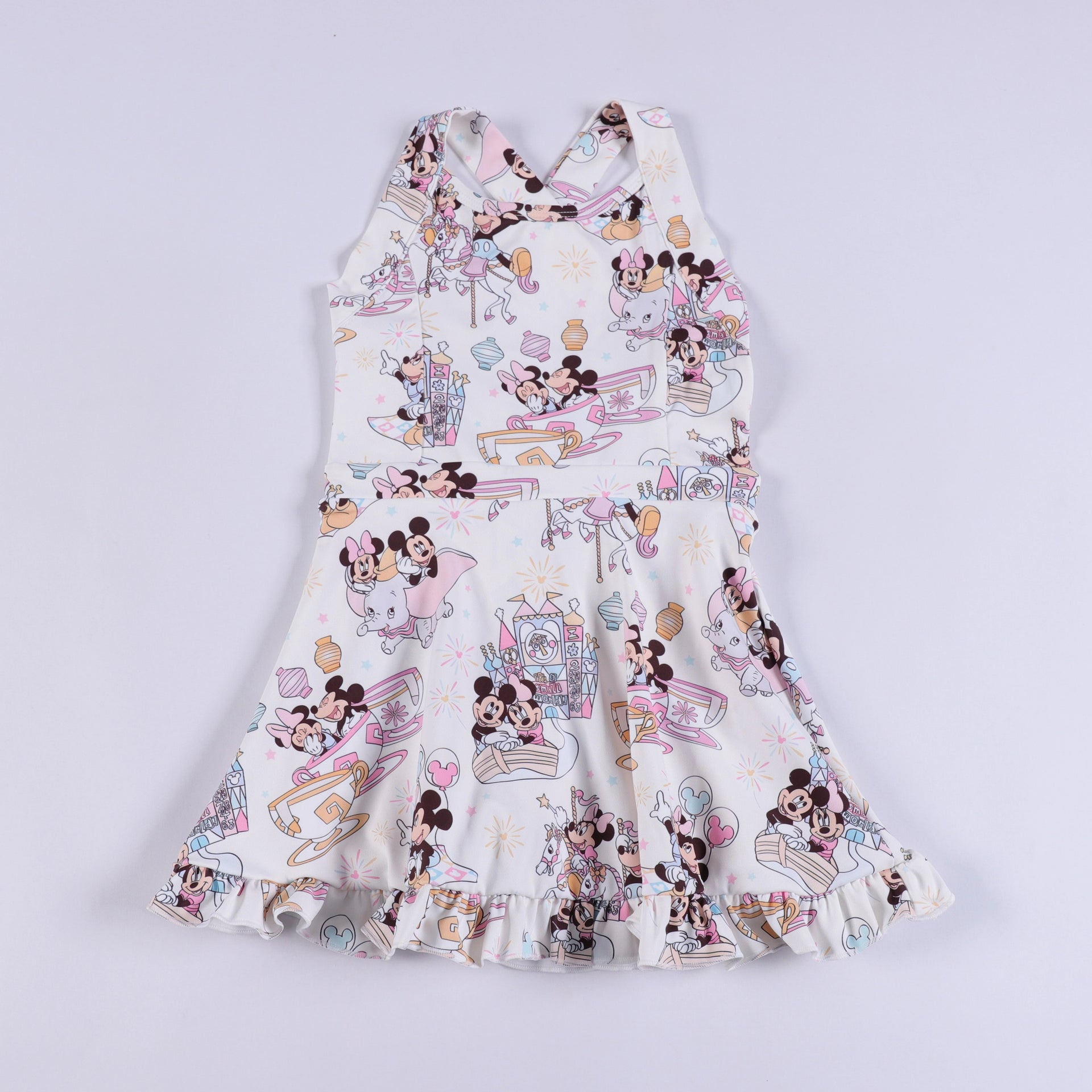 Get ready to twirl into magic! Our Park Day Princess Dress is the ultimate blend of sporty comfort and dreamy style. Made for long theme park days, tennis matches, or just chasing joy under the sun. Adorned with an all-over prints with your favorite characters!
